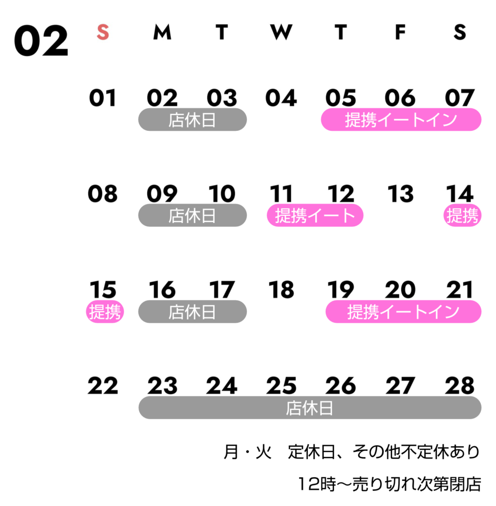 2月の営業日 :
